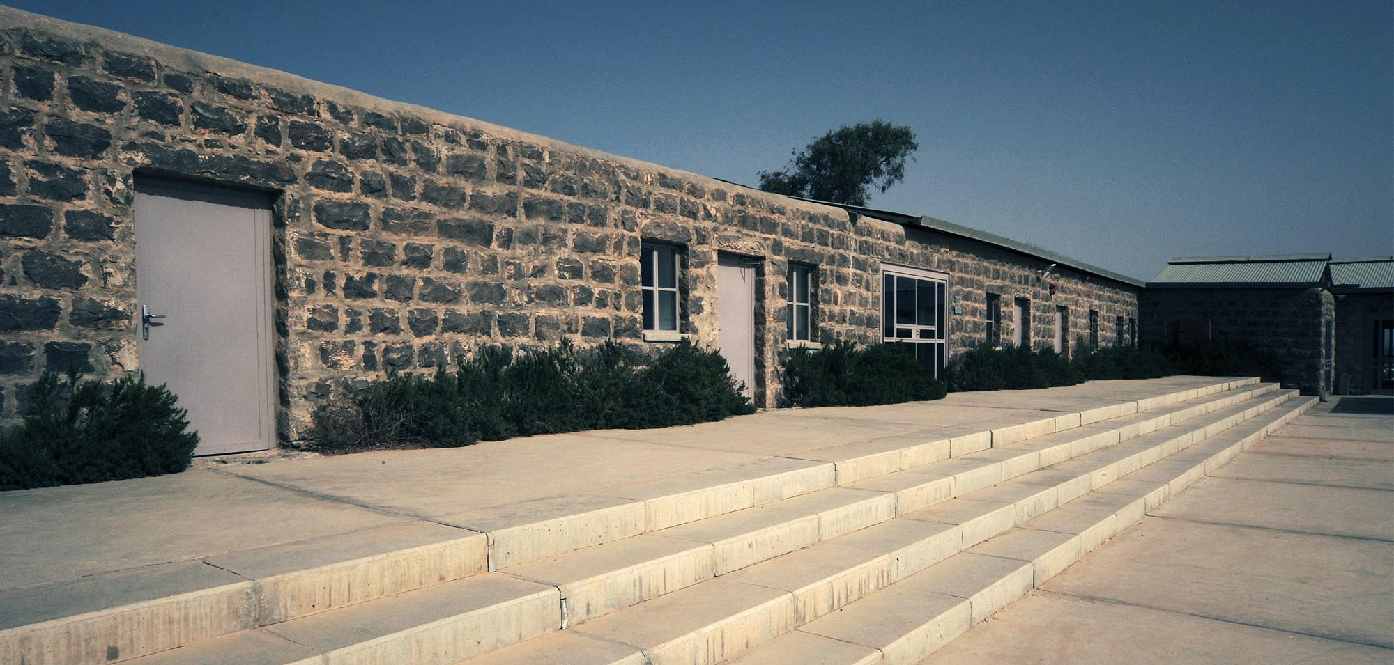 The main building, which is a pre-existing 1940's hospital from the British Mandate period, was renovated to host tourists and visitors of Al-Azraq Wetland Reserve. The building held a very utilitarian and military formal tone that was intended to be kept as part of the building’s character, and the renovation scheme concentrated on maintaining the seriousness of the original structure through a very straightforward use of materials; using bare concrete, uncovered I-beams, clear additions and exposed wall sections whenever a cut through the stone was required.
