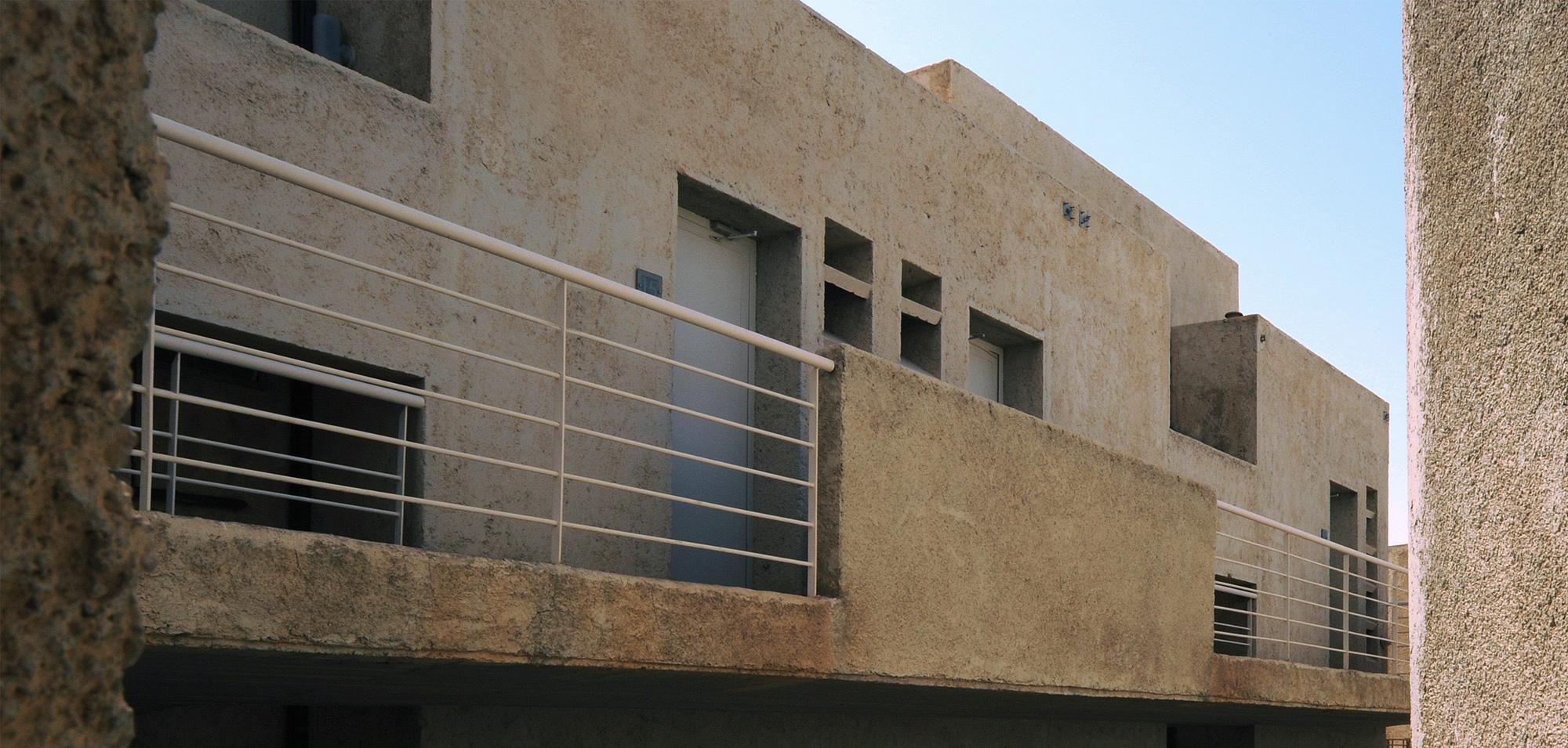 However, the U-shaped courtyard between the two buildings holds the most valuable quality. This quality lies in the emptiness and nothingness of the space, with three closed sides and a fourth that opens to the east desert. The courtyard was envisioned as a multifunctional space, where owners can screen movies, do traditional festivals and/or produce local handcrafts to sell. This space, with the exception of a shading pergola on one side, should not be furnished and should stay bare and adaptable.