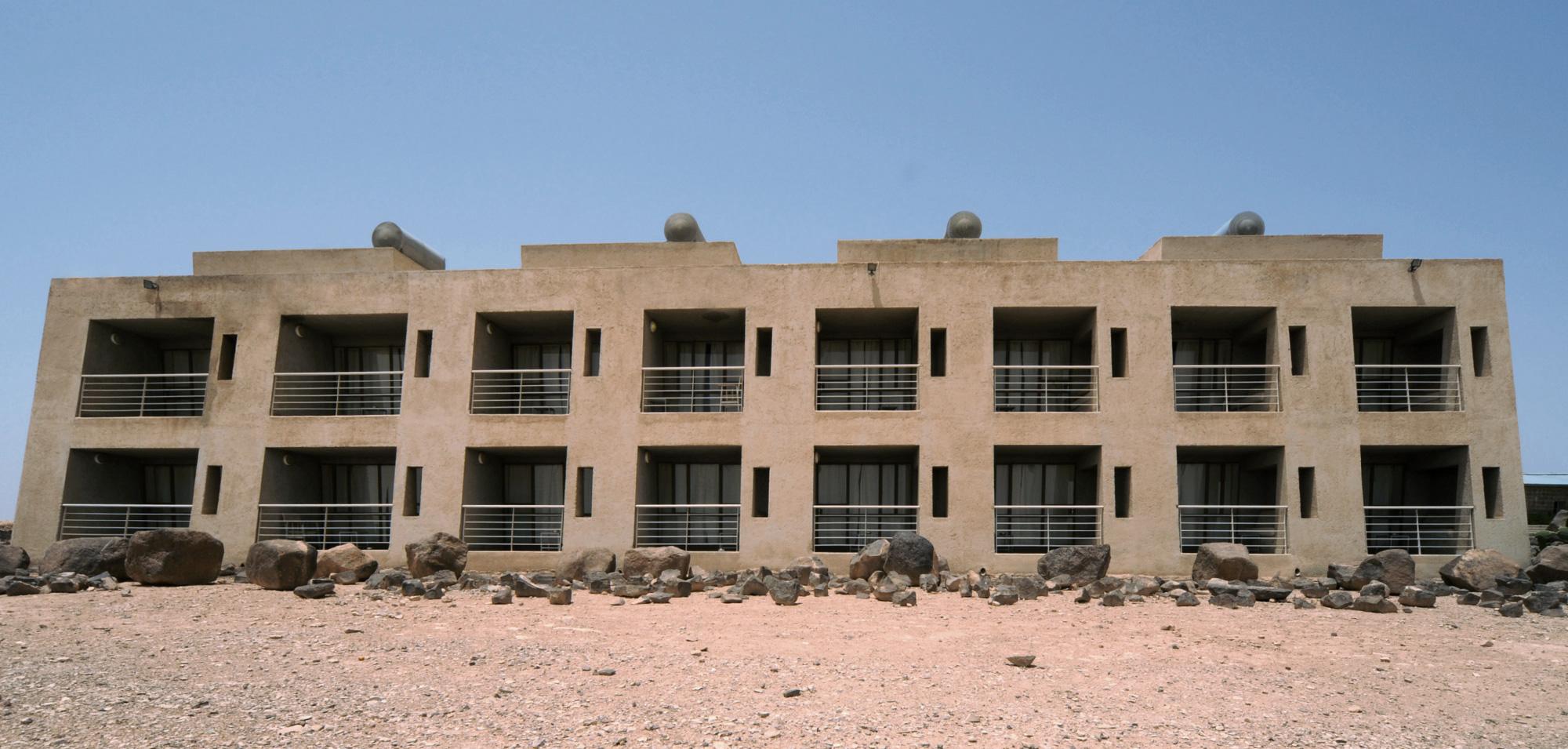 Conceived as a weekend retreat set on a hillside near Al-Azraq Wetland Reserve, the lodge is formed from three structures including the restored main building, the guestrooms, and the workshops.