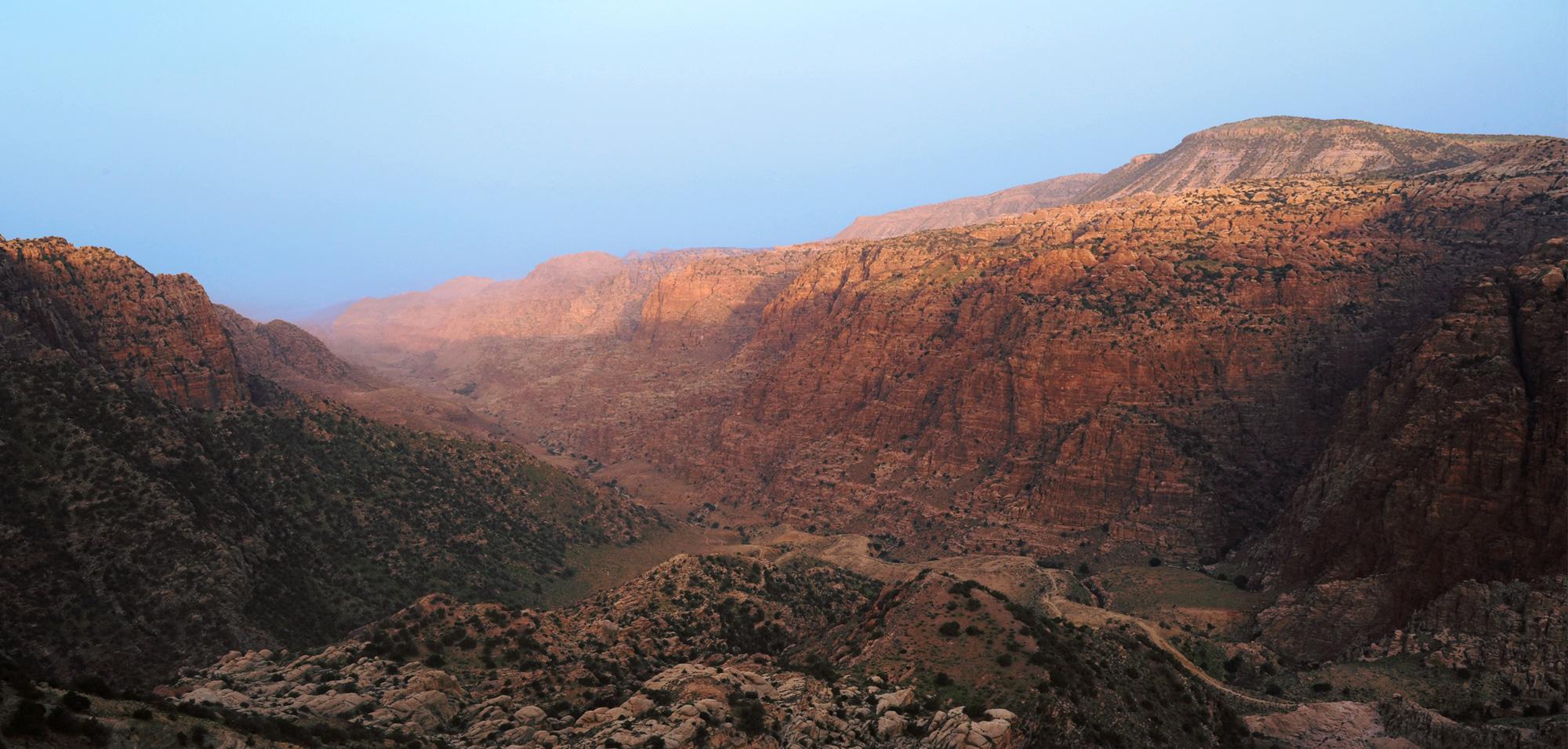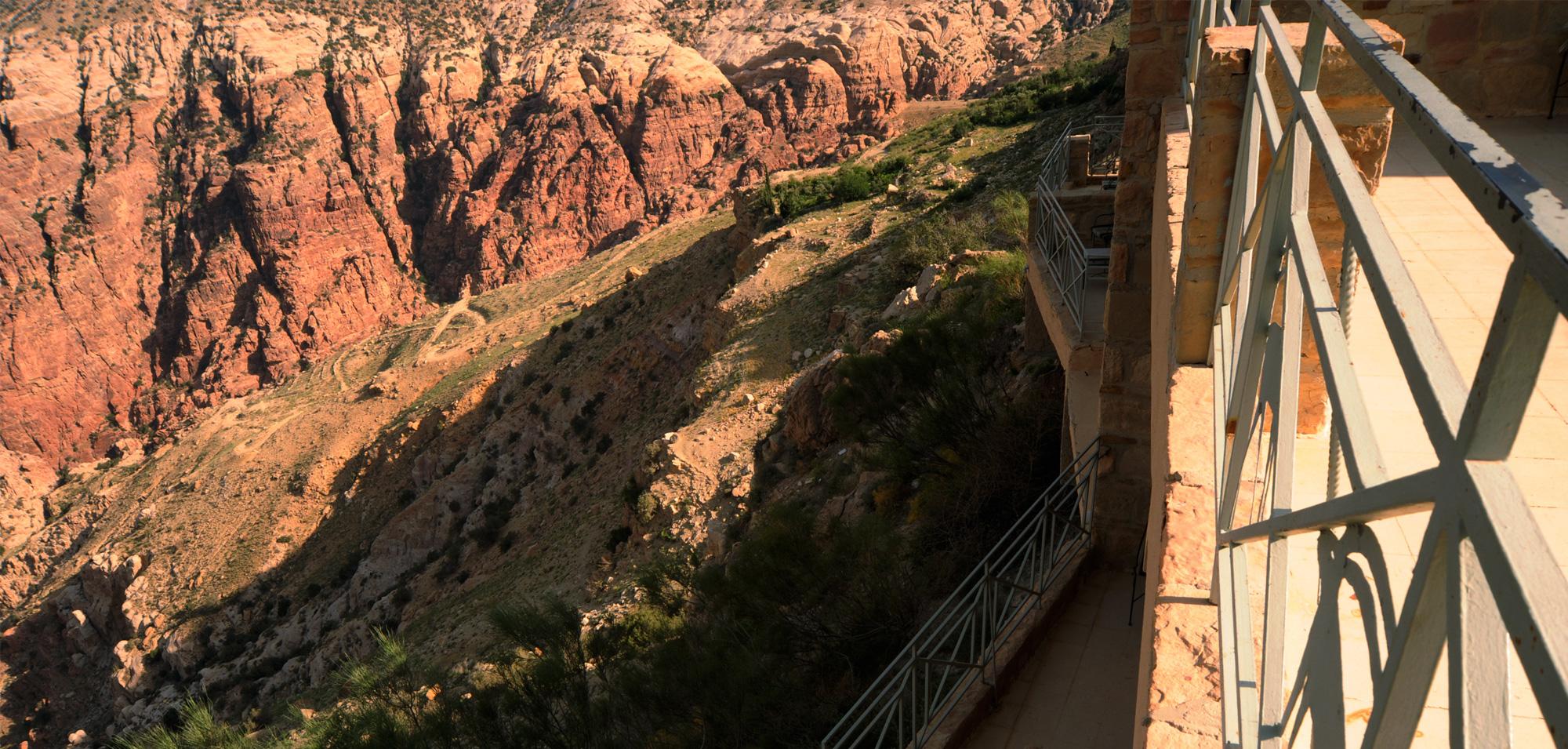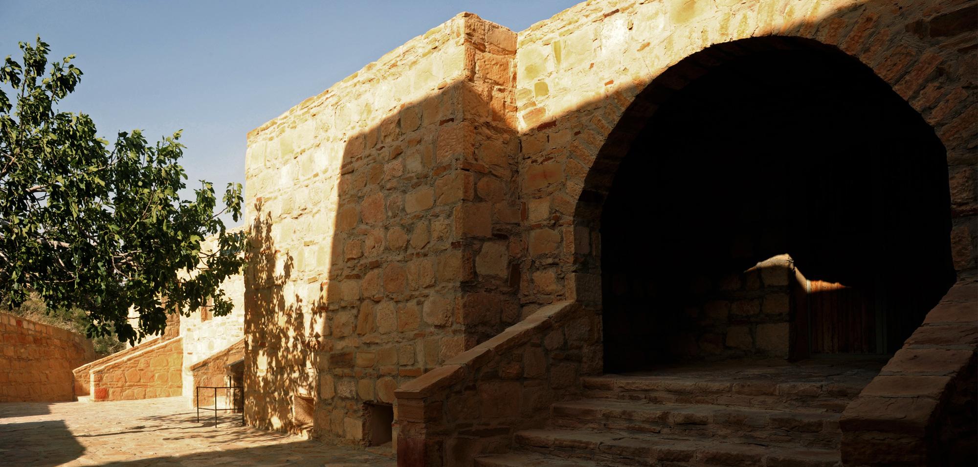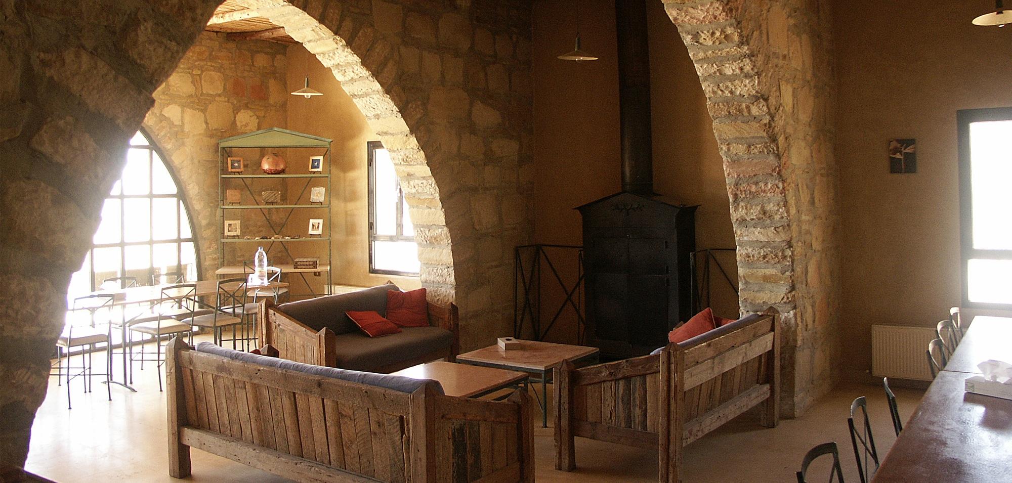 Set on a cliff in Dana Biosphere Reserve, Dana Guesthouse sits on a very unstable foundation with a very bad soil. Half of the building's structure is thus suspended and cantilevered above the weak soil, and the guesthouse ends up floating over the cliff line. The building’s morphology resembles half a pomegranate whose other half has fallen into the valley.