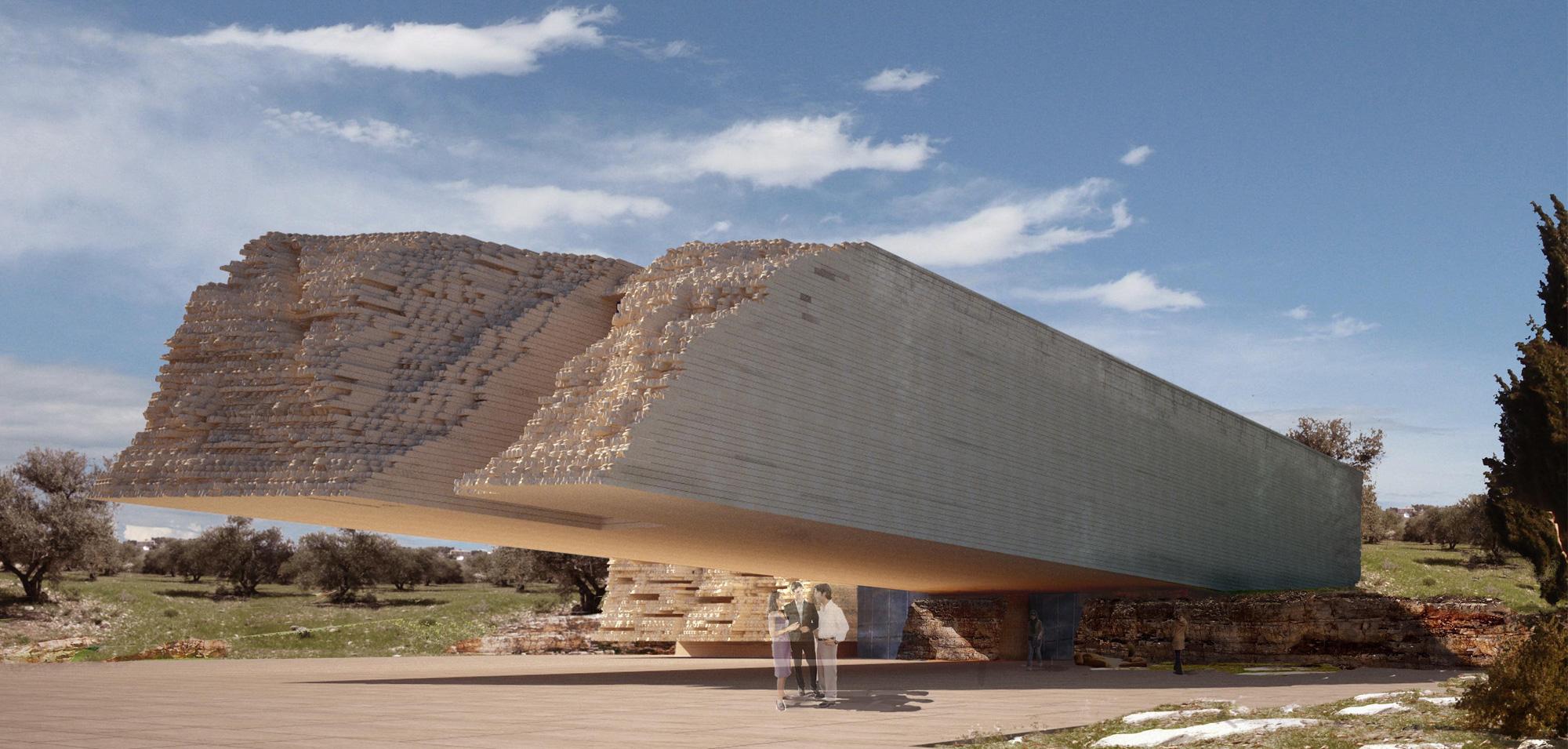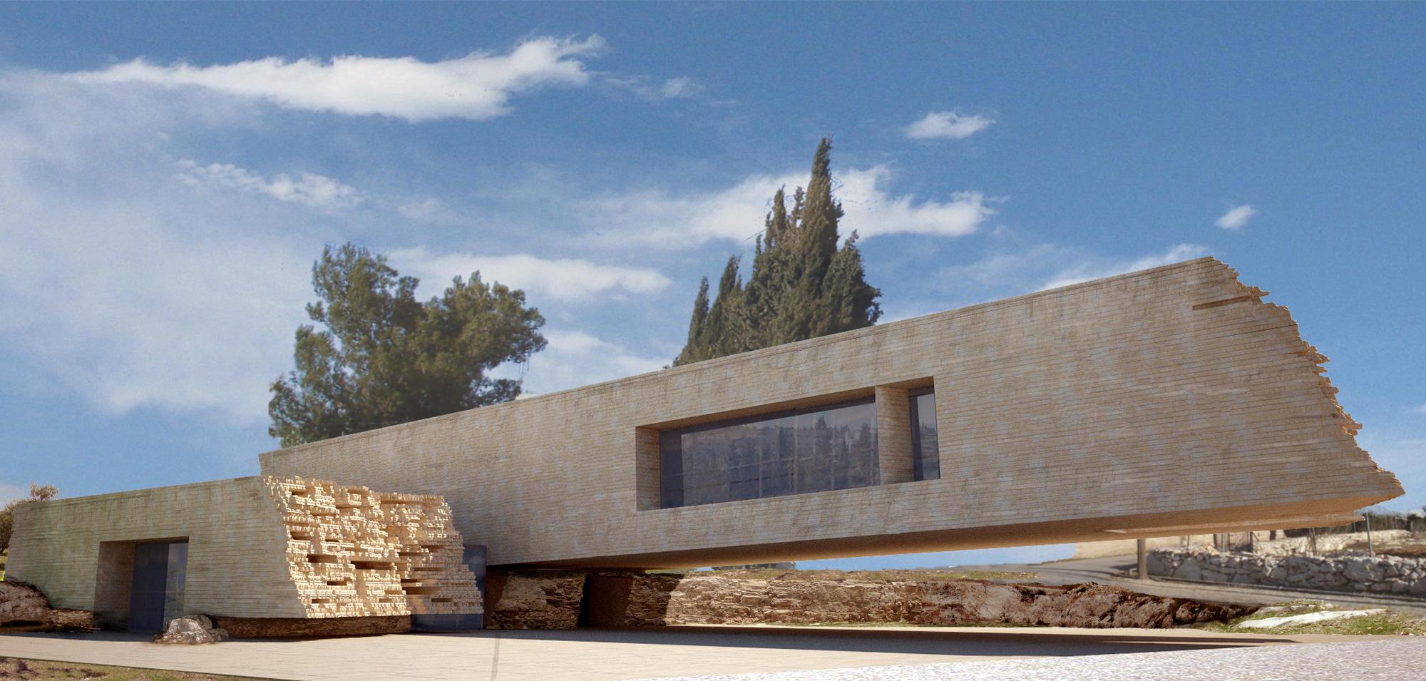 The building would not occupy the site but would rather fly above it. It is designed to become a metaphor for rock strata that erodes with time. From one end, the building erodes and dissolves in space, creating an intricate natural break point which suggests the building's being in a continuous state of breakage, a never-ending breaking process.