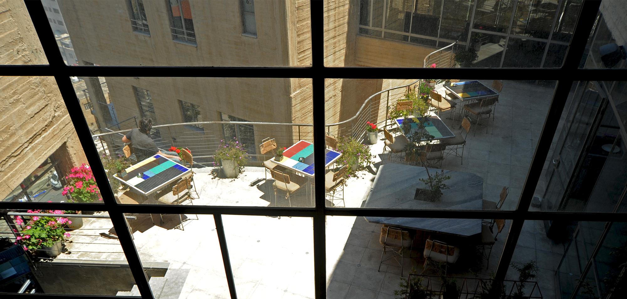 The Nature Center's program flows very fluidly in the space, with many multi-functional zones that can be used for anything. The space holds a craft shop, organic shop, café, lecture halls to support and promote eco-tourism, in addition to offices and exhibition spaces. The upper terrace, however, is the highlight of the Nature Centre. It serves as an urban marketing station where many tourism groups, and even architecture students, stop to witness the multi-layered city: from the Citadel, late Ottoman period and early starts of Amman to contemporary buildings and projects. The view from the terrace can explain the story of the city from only one spot which is a witness on the ever-changing face of the city.