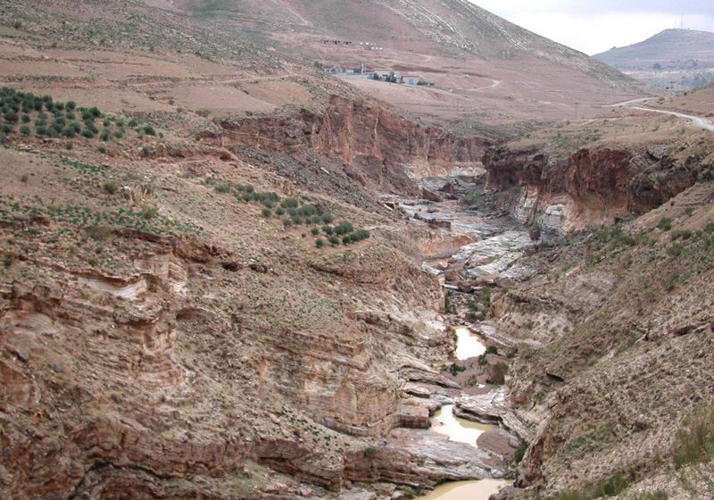 One-hour drive from Amman. Wadi Wala has its audience who return to it for the amazing variety of wild flowers and beautiful scenery. From Madaba, drive on the King's Highway for about 18 km, past the town of Libb till the road descends into a deep valley with a bridge. Immediately after the bridge exit to the right - westward, passing through a nursery, the road follows the valley on its southern side.