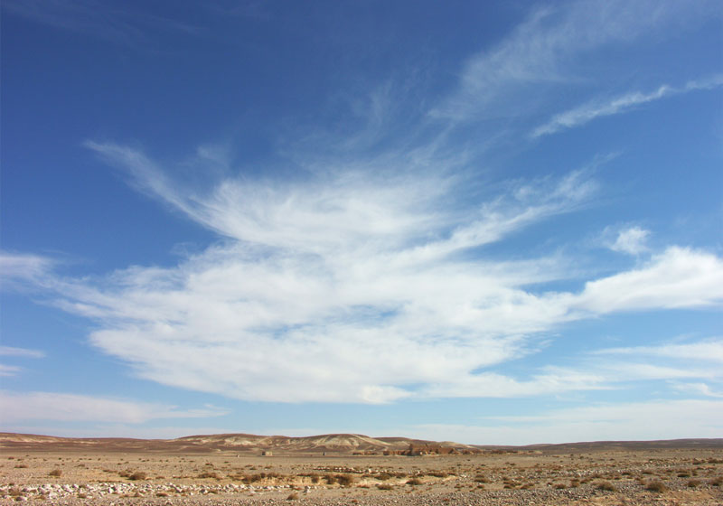 A drive to Qasr Tuba is a good sample of Jordan’s flint desert. Unlike basalt or sand, flint sends a ring while the tires of your car make their way –the slowly turning wheels play endless flint lengths, each ring differently, making the whole desert sound like a continuous keyboard of a strange musical instrument.