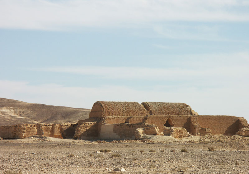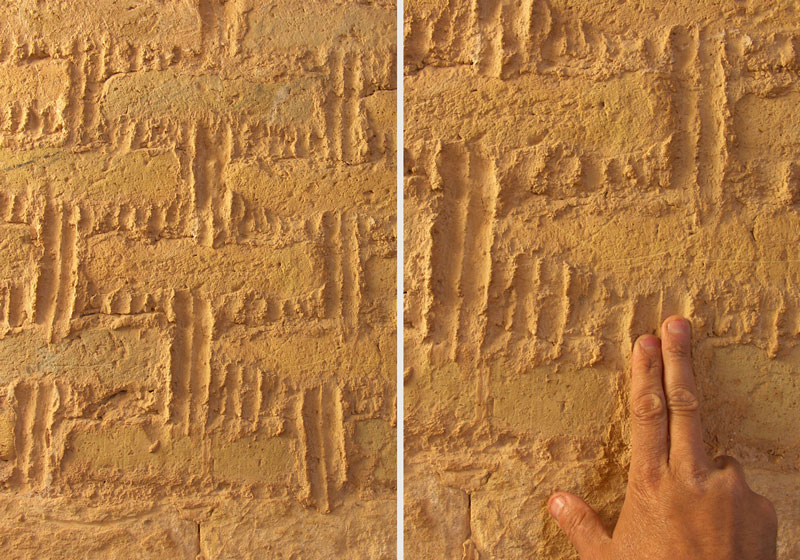 The most touching feature can be seen and felt inside the Qasr. As the walls that carry the vaults have never been finished, plastered or extensively used, their grouting is still fresh, as if made a few weeks ago. In fact you can see how the mortar was applied between the bricks. The parallel finger grooves that run vertically are so well kept that you can pass your own fingers in the same manner, as the very fingers of those masons who were about to finish this structure when the orders to stop reached this difficult desert address.